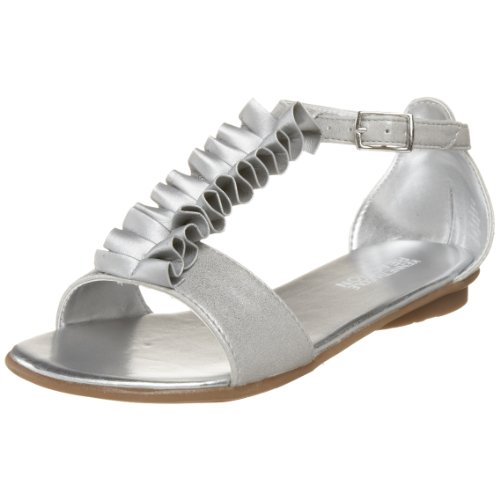 Keep her look up to date with this darling ruched t-strap sandal from Kenneth Cole Reaction. A perfect choice for parties, special occasions, or any time she wants to feel a little dressed up, it boasts a metallic upper with a partial heel quarter and an adjustable ankle strap.