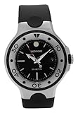 - Stainless-steel case; black dial with wave pattern