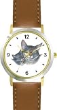 More Detail For Gray Tabby Cat Mom and Kitten Cat JP WATCHBUDDY DELUXE TWO TONE THEME WATCH Arabic Numbers Brown Leather Strap Children s Size Small Boy s Size Girl s Size