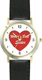 More Detail For Red Heart World s Best Sister Love Friendship Theme WATCHBUDDY DELUXE TWO TONE THEME WATCH Arabic Numbers Black Leather Strap Children s Size Small Boy s Size Girl s Size
